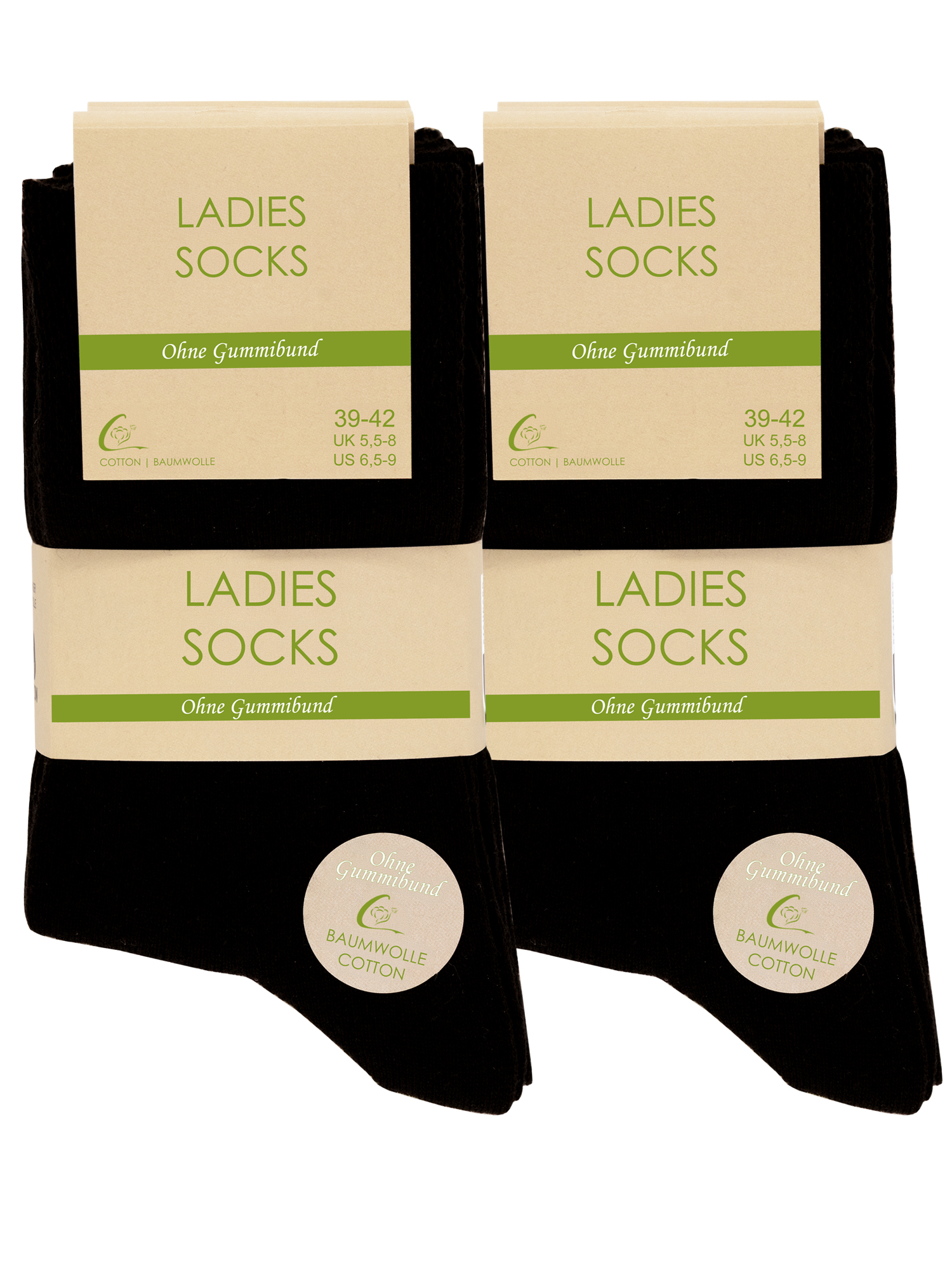 Eigenschaften "10 Paar Damen Socken schwarz, ohne Gummibund"