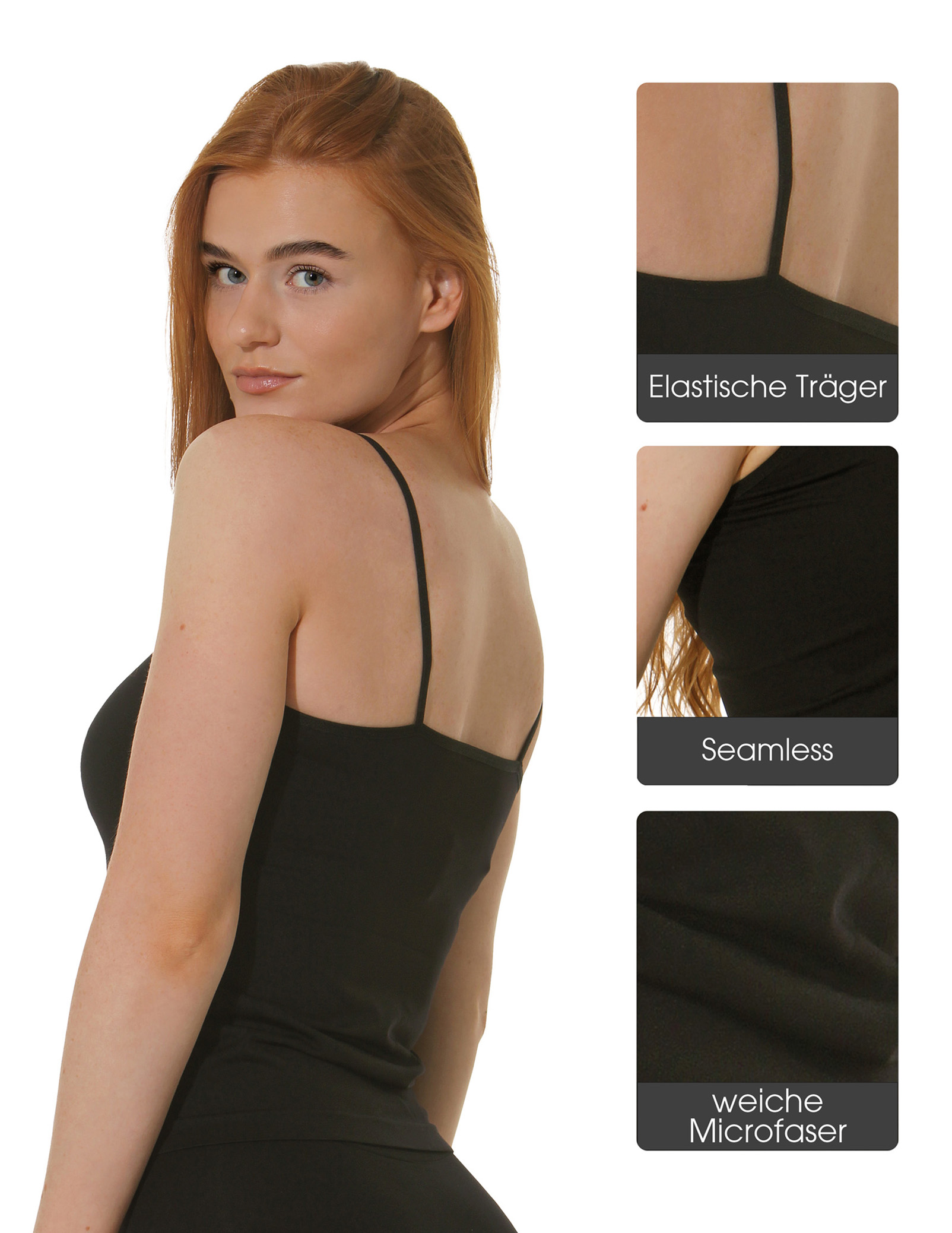 4er Set Mikrofaser Spaghetti Top - Unterhemd