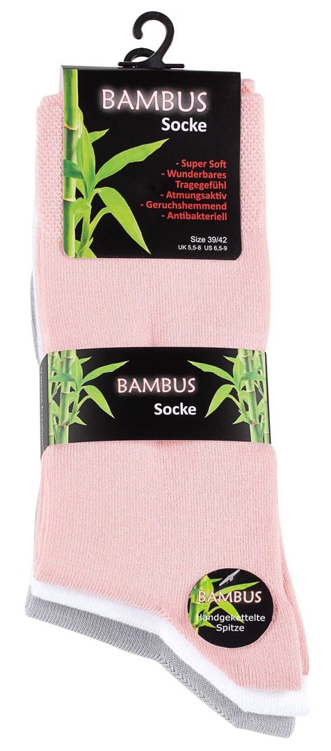 6 Paar "BAMBUS" Socken, Handgekettelte Spitze