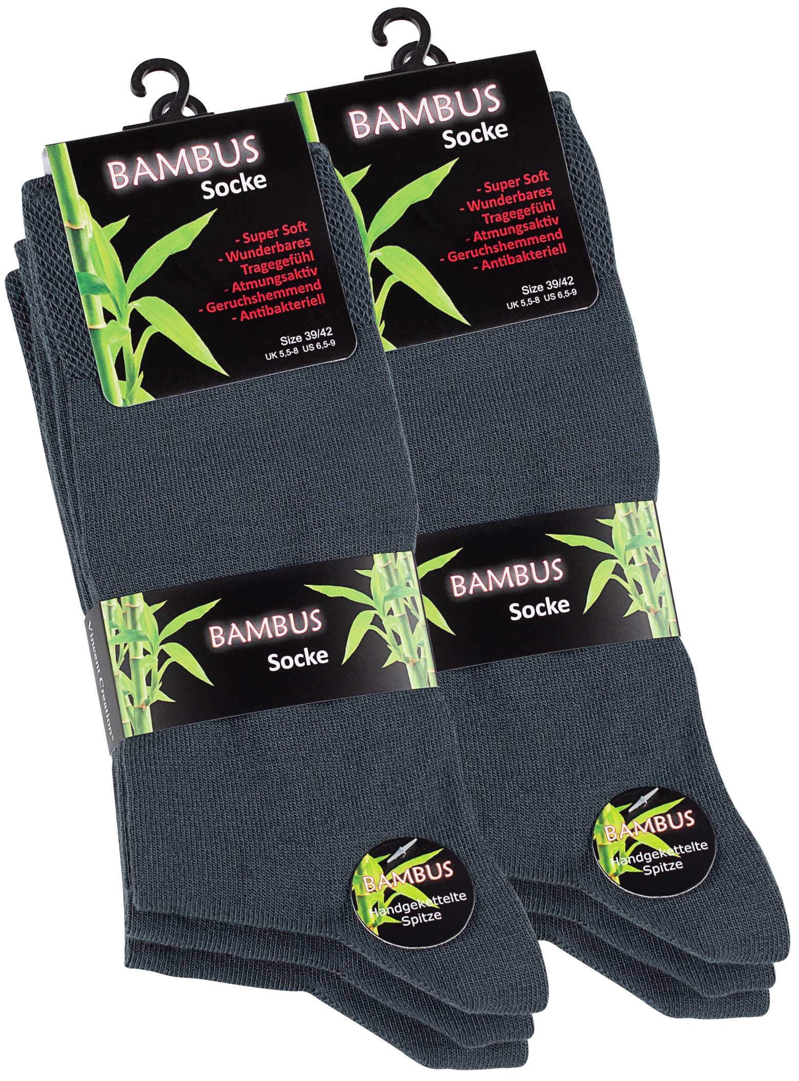 6 Paar "BAMBUS" Socken, Handgekettelte Spitze