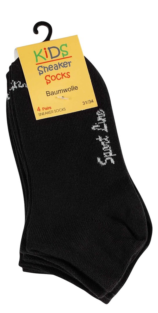 Mit den 8 Paar Kinder Sneaker Socken "Sport Line" in schwarz sind Ihre Kinder bestens gerüstet für jeden Tag. Diese Socken bieten den perfekten Mix aus Komfort, Funktionalität und modischem Design und sind die ideale Wahl für aktive Kids.