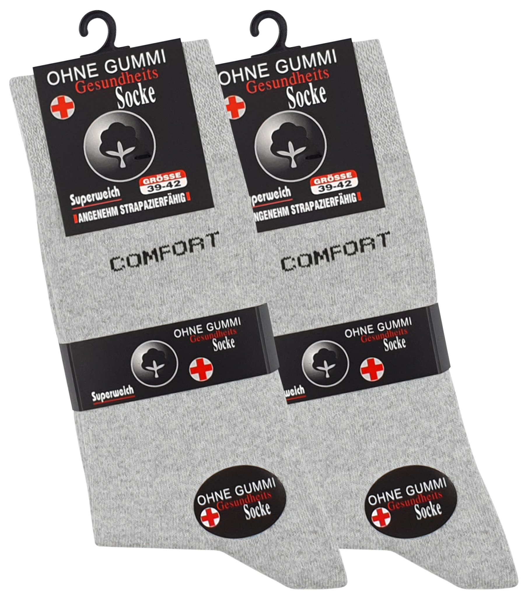 Herren Gesundheitssocken "COMFORT" – 8er Pack | Baumwollsocken ohne Gummibund Die Herren Gesundheitssocken "COMFORT" von Cottonprime vereinen hochwertige Materialien, erstklassigen Tragekomfort und zeitloses Design. Ob im Büro oder in der Freizeit – diese Socken sind die perfekten Begleiter für jeden Tag. Dank des praktischen 8er-Packs bist du bestens ausgestattet und genießt Tag für Tag ein frisches, komfortables Tragegefühl. ✅ Vorteile auf einen Blick: Ohne Gummibund – venenfreundlich & druckfrei: Diese Socken besitzen keinen klassischen, straffen Gummizug. Stattdessen sorgt ein weich gearbeiteter, elastischer Komfortbund für sicheren Halt – ohne einzuschneiden oder Druckstellen zu hinterlassen. - Ideal für empfindliche Beine, fördert die Durchblutung und ist besonders venenfreundlich – perfekt bei langem Sitzen, Stehen oder für Menschen mit Kreislaufproblemen. Hochwertiger Baumwoll-Elasthan-Mix: Mit 65 % Baumwolle, 30 % Polyester und 5 % Elasthan bieten die Socken ein angenehm weiches, atmungsaktives Tragegefühl und eine perfekte, faltenfreie Passform. Klimaregulierend & atmungsaktiv: Der hohe Baumwollanteil sorgt für natürliche Luftzirkulation – ideal für den täglichen Einsatz im Business oder in der Freizeit. Flache Zehennähte: Keine störenden Druckstellen, für ein rundum bequemes Laufgefühl. Langlebig & formstabil: Der venenfreundliche Bund franst nicht aus, die Socken behalten auch nach vielen Waschgängen ihre Form. Vielseitig kombinierbar: Vom eleganten Business-Outfit bis zum sportlich-lässigen Freizeitlook – diese klassischen Herren Baumwollsocken passen einfach immer.
