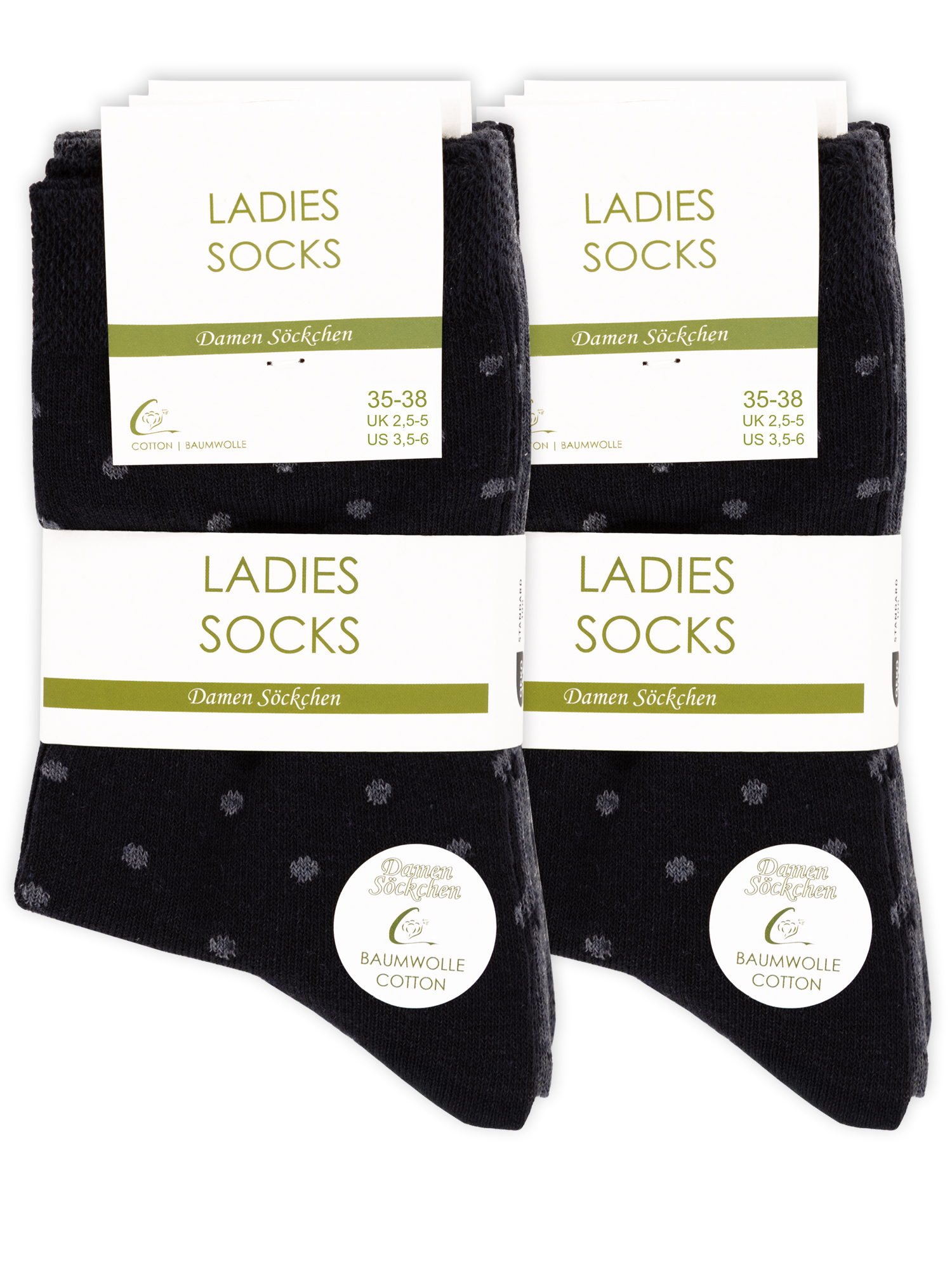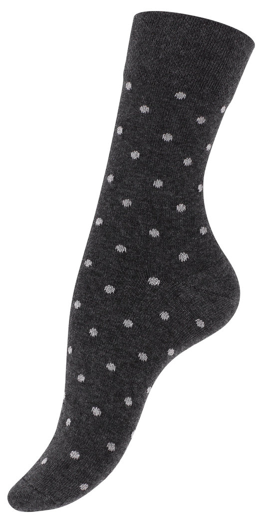 10 Paar Bunt gepunktete Damen Baumwoll Socken "DOT" Die Damensöckchen überzeugen durch ihren ansprechenden Farbmix sowie ihren hohen Tragekomfort. Im trendigen Punkte Design liegen die Damensöckchen dicht am Fuß. Das weiche Baumwollmaterial ist um Polyester und Elasthan ergänzt, sodass die Socken ein angenehmes Tragegefühl bieten. Zusätzlich macht diese Qualität den Strumpf anschmiegsam und atmungsaktiv, sodass er ideal für Freizeit und Sport ist. Nicht einschneidende Bündchen sorgen für besonderen Tragekomfort. Die gepunkteten Damensöckchen sind somit richtig modische Allrounder, die sich dabei immer noch vielseitig kombinieren lassen. Material: 75% Baumwolle, 22% Polyester, 3% Elasthan Farbe: schwarz mit bunten Punkten Pflegehinweis: Maschinenwäsche 40° C
