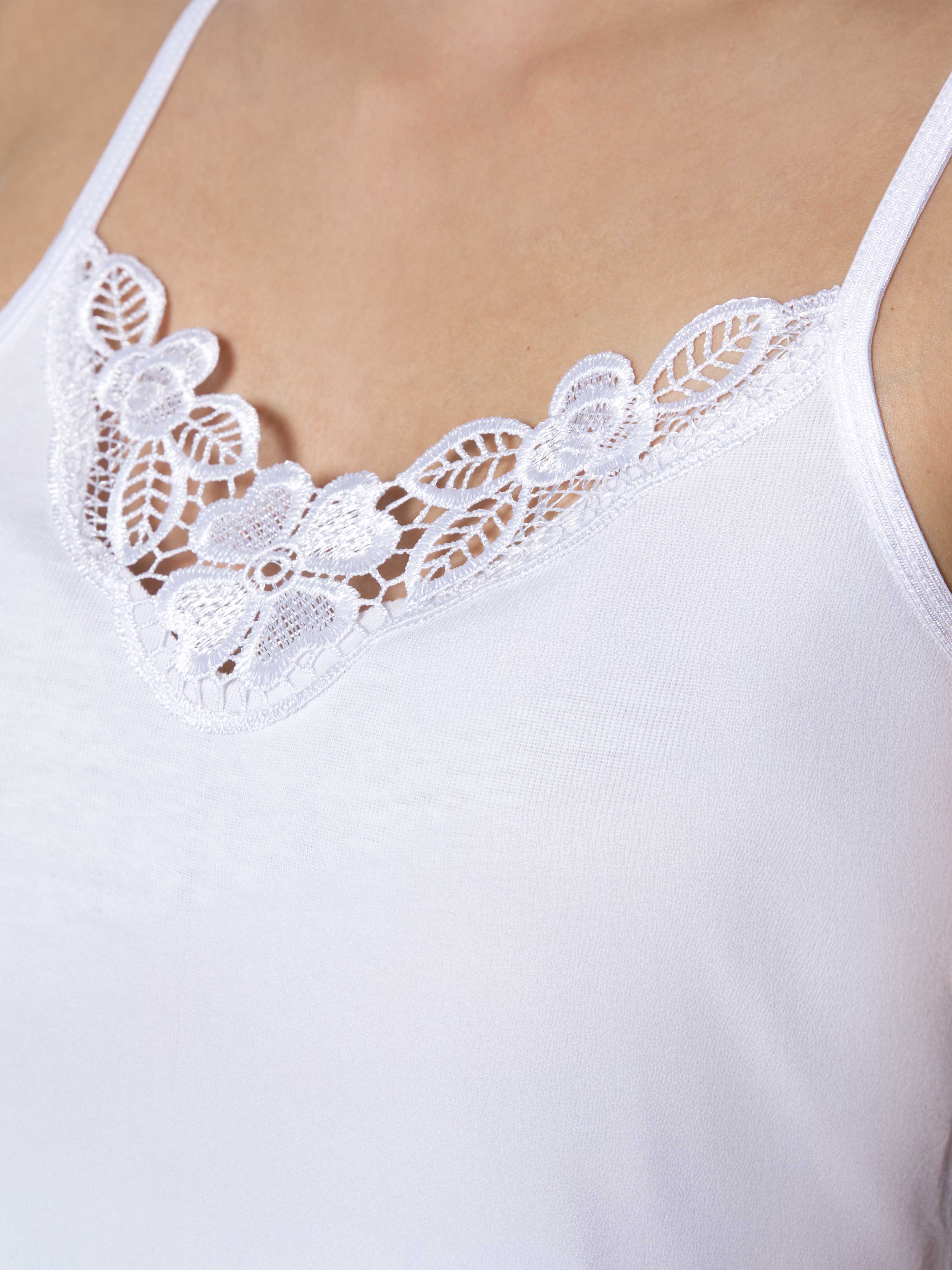 Spitzen & Farben können leicht vom Bild abweichen Bequem und feminin zugleich präsentieren sich die Unterhemden von Cottonprime. In Sachen Design setzen die Tops auf einen unifarbenen Look mit verschiedenen Stickereien. Mit ihren breiten Trägern und der trageangenehmen, weichen Feinripp-Qualität sind die Tanktops perfekt für den Sommer geeignet. Dieses Damen Unterhemd zeichnet sich durch die wunderbare Spitze aus, welche ebenfalls als Träger dient. Das Spitzen-Motiv ist dabei angenehm zu Tragen und ein optisches Highlight. Durch die bewährte Qualität aus 100% gekämmter Baumwolle ist das feminine Trägerhemd angenehm weich und bietet einen hohen Tragekomfort. Die Unterhemden von Cottonprime sind wirklich wunderbare Basics mit einem romantischen Extra. Ein Top, das für eine stylische Garderobe unentbehrlich ist und das ganze Jahr über getragen werden kann. Verschiedene Stickereien Mit großer Spitze Breite Träger Weiche Feinripp-Qualität